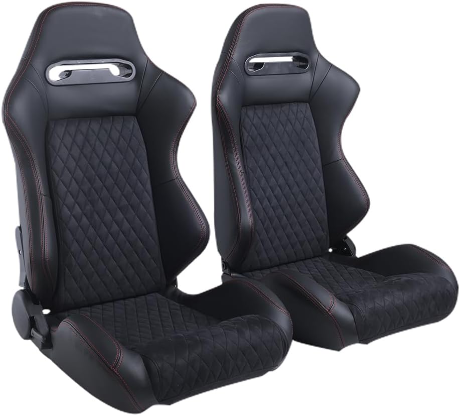 Product Features Durable & Comfortable - Made of thick steel frame, which is more stable and sturdier. The foam padding features excellent performance like fast rebound, not distortion easily. Ergonomic Racing Seats - Designed ergomonically, the racing seats provide you with more reliable support and added comfort. Improve the looks of your car while maintaining practicality. ATTENTION - Universal for 95% cars, please carefully CHECK the DIMENSIONS to make sure the seats fit your car. The mounting brackets are NOT included. Professional installation is highly recommended. Reclining Design & Front-Back Adjustable - Full adjustable backward between 90-180 degree is available for both safe driving and taking a break. Adjust the seat forward and backward easily with dual lock sliders. These are aftermarket racing seats so will not compatible with the OEM features, such as air bags, heated seats, power seats, etc.